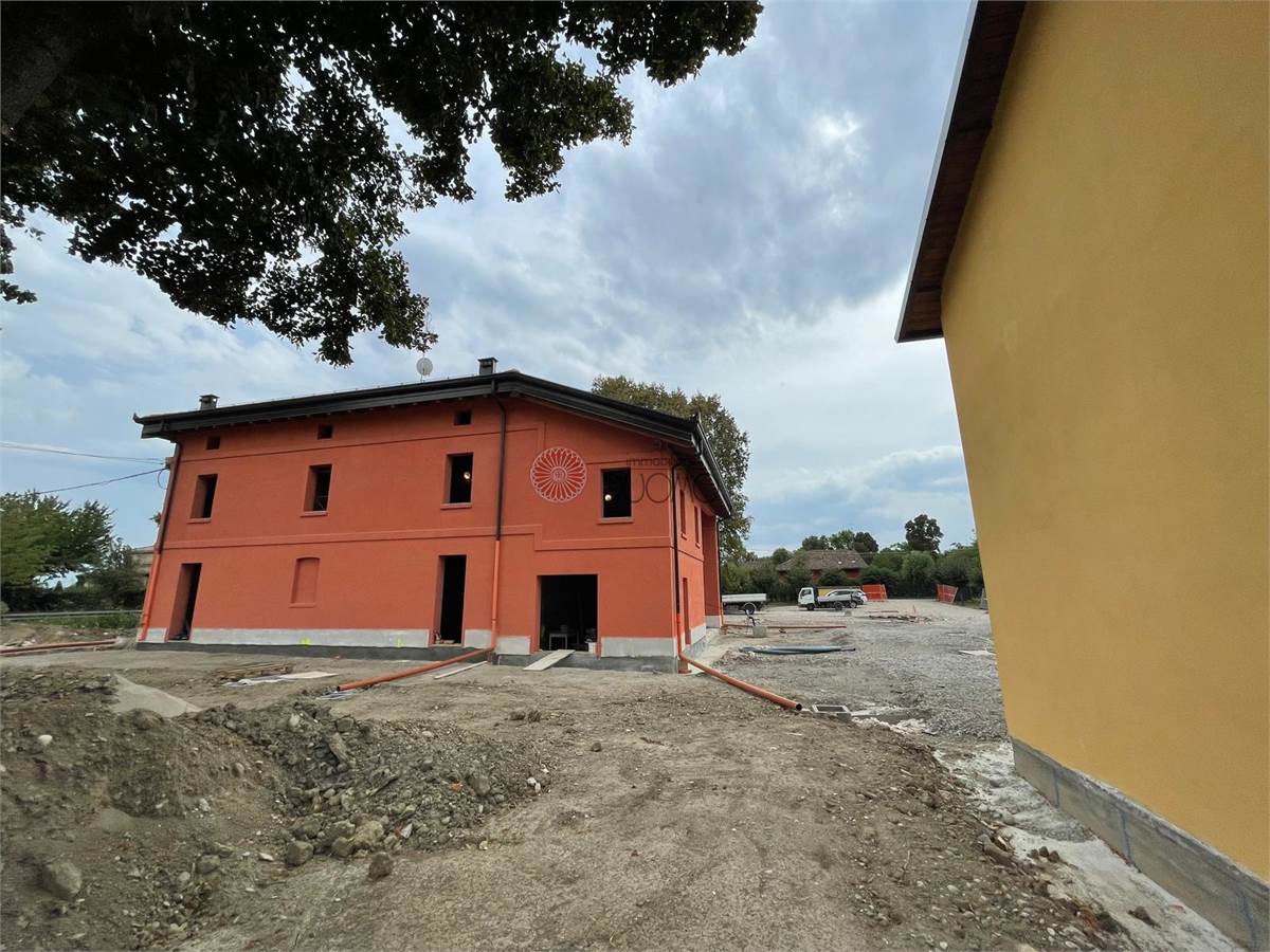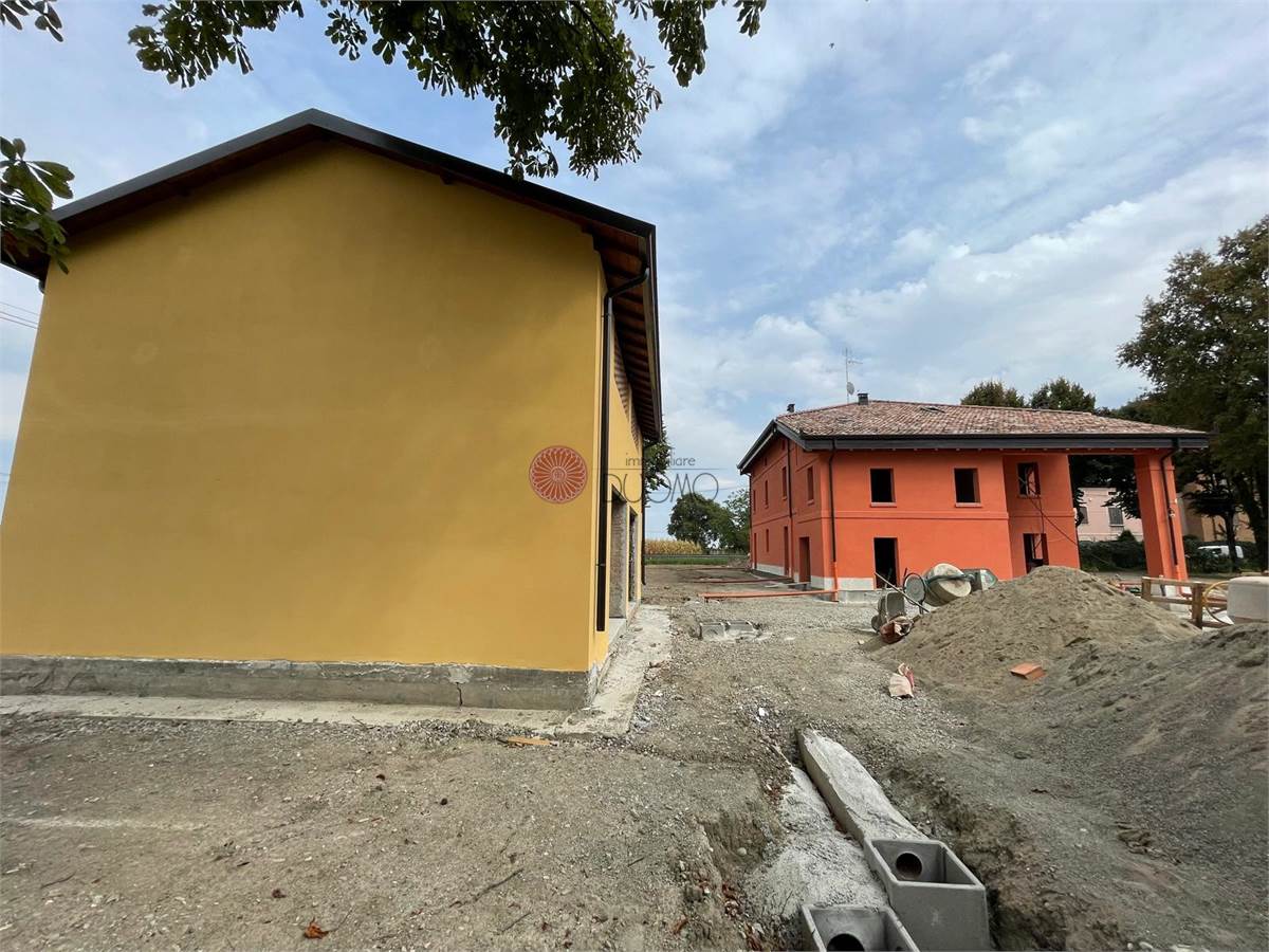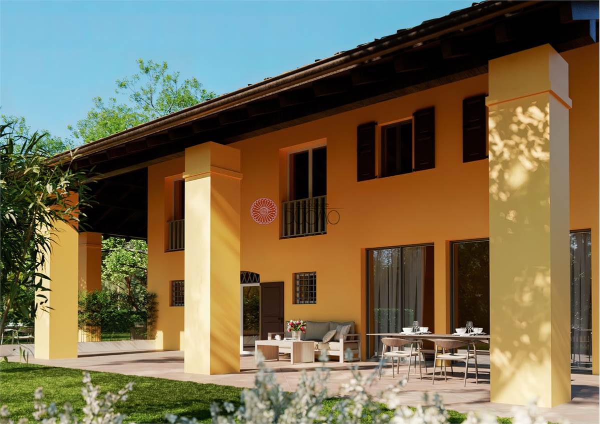 BAGGIOVARA NELLA TRANQUILLA CAMPAGNA VERSO MAGRETA in Completo Recupero di Borgo di campagna, proponiamo Villa ad angolo composta da splendido portico d'ingresso sull' ampio Soggiorno con cucina a vista o separabile, bagno e camera da letto o studio, piano primo con camera, bagno e splendida suite con camera, stanza armadi e bagno. GIARDINO privato di mq 490, più terreno aggiuntivo di mq 460. garage a scelta da aggiungere a parte. Riscaldamento a pavimento con FINITURE DI PREGIO. Consegna ESTATE 2026