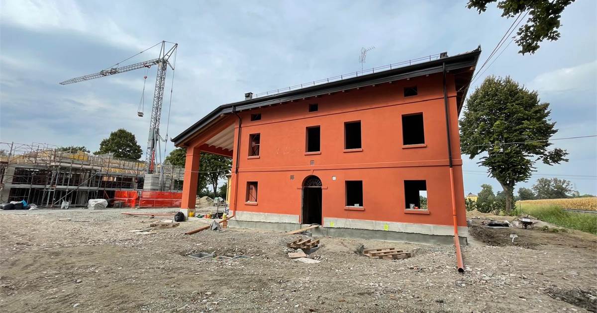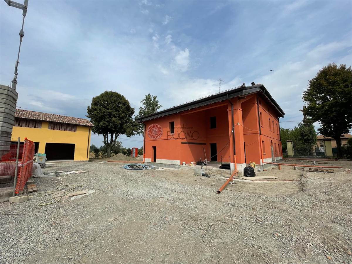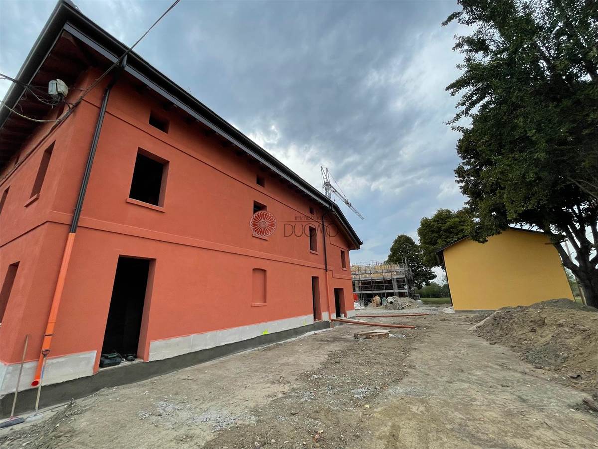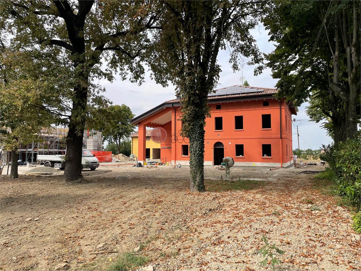 BAGGIOVARA NELLA TRANQUILLA CAMPAGNA VERSO MAGRETA in Completo Recupero di Borgo di campagna, proponiamo Villa ad angolo composta da splendido portico d'ingresso sull' ampio Soggiorno con cucina a vista o separabile, bagno e camera da letto o studio, piano primo con camera, bagno e splendida suite con camera, stanza armadi e bagno. GIARDINO privato di mq 490, più terreno aggiuntivo di mq 460. garage a scelta da aggiungere a parte. Riscaldamento a pavimento con FINITURE DI PREGIO. Consegna ESTATE 2026